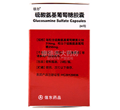 每个胶囊含硫酸氨基葡萄糖晶体314mg(相当于含硫酸氨基葡萄糖250mg)